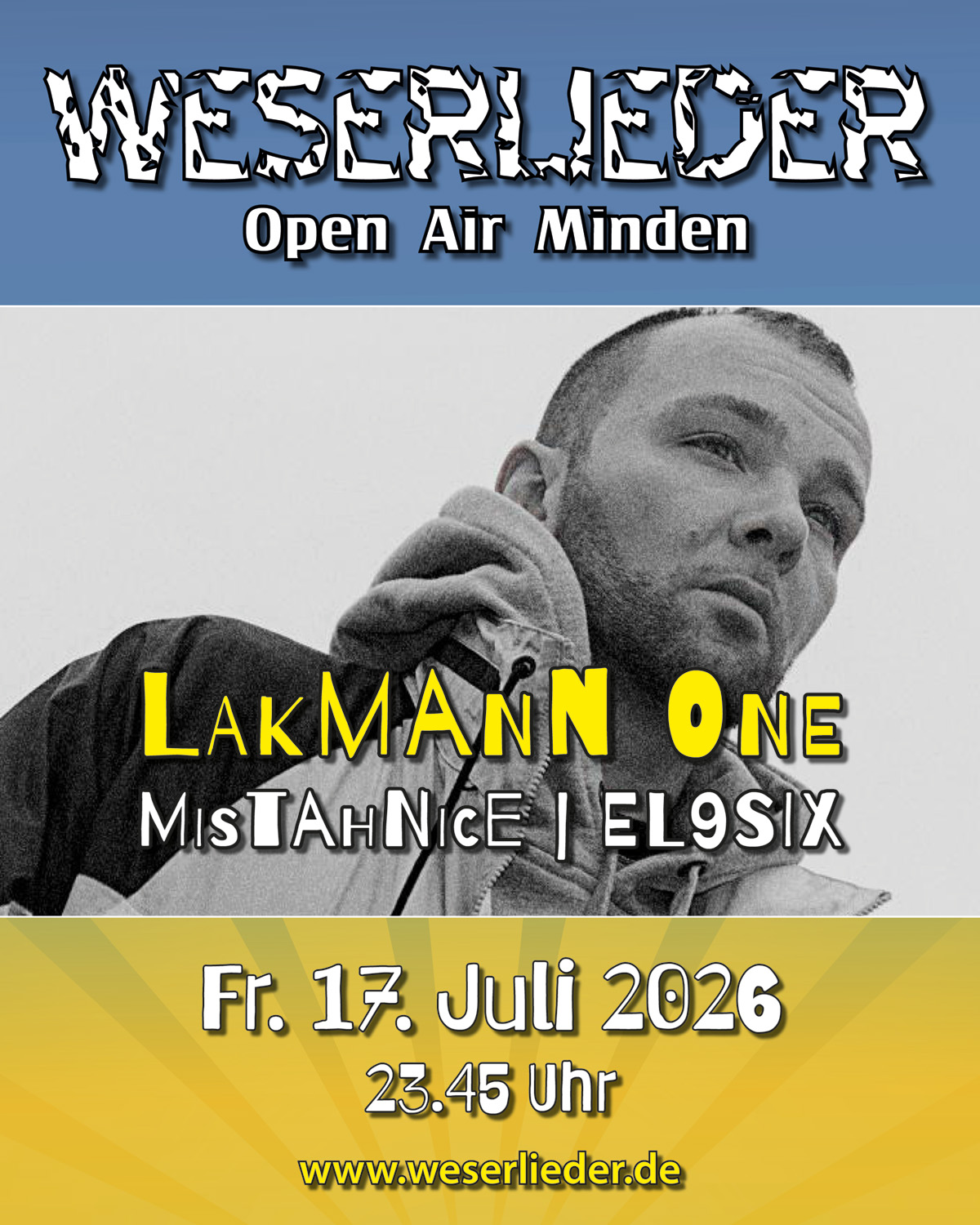 Wisst ihr noch 2025, Freitagabend? Da haben uns die Mindener Rap-Legenden Italo Reno & Germany mit Big Toni und Gästen endgültig bewiesen, dass die Weserlieder und HipHop sogar sehr gut zusammenpassen. Auch wenn man vielleicht beim 2. Anlauf noch nicht von Tradition sprechen kann, aber es riecht schon ein wenig danach: Denn Auch 2026 wollen wir euch am Freitagabend zum Abschluss wieder allerfeinsten Hip-Hop präsentieren.
