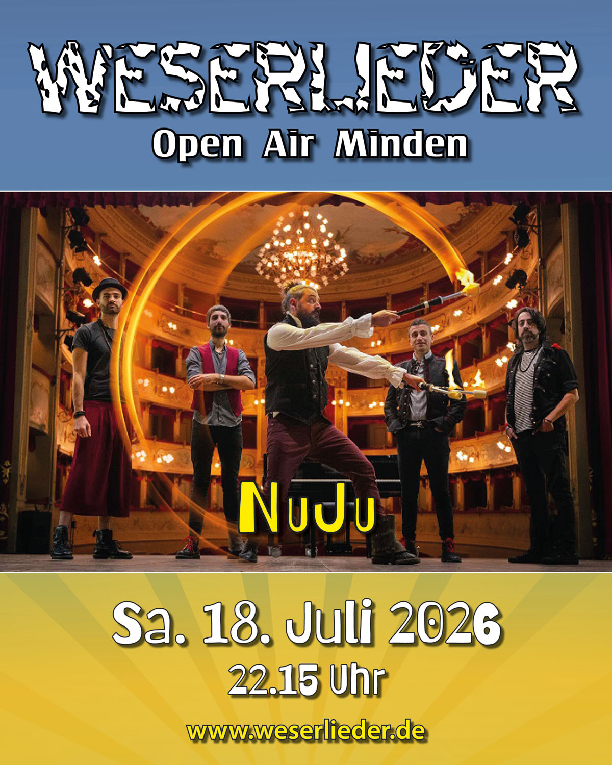 Dieses Jahr holen wir für euch am Samstag mit NUJU echte italienische Leidenschaft zum Weserlieder Open Air! 🌊✨